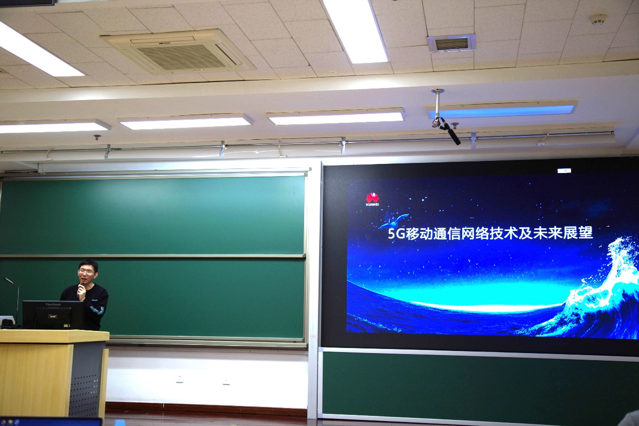 讲座伊始,陈鹏先生首先介绍了自己入职华为的历程,他指出本次讲座旨在让同学们对5G以及通信网络技术形成一个初步的认识。本次讲座将分为三个部分展开:5G网络介绍、5G关键技术以及对于通信网络未来技术的展望。 紧接着,陈先生向在座的同学们提出了两个个小问题:什么是5G?5G的标准由哪个机构负责?同学们踊跃回答。 “5G”,即第五代移动通信网络,其标准是由3GPP(3rd Generation Partnership Project)制定完成的。而在5G出现之前,3G与4G主要的服务对象是手机用户,而5G在技术架构上发生了变化,可应用场景更广,并能够用于企业用户,从而渗透到各行各业中去。陈鹏先生指出,华为作为一家以通信为根基的公司,其在3G时代 提出的口号是“丰富人们的沟通与生活”,而在5G时代提出要 “赋能各行各业”。