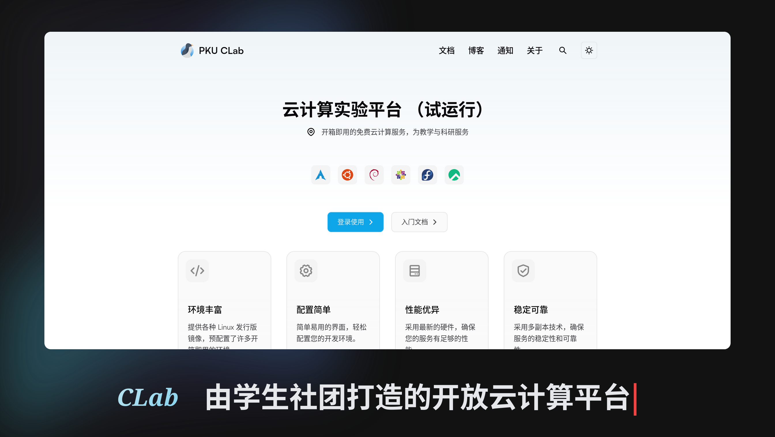 随着新工科课程对实践教学设施需求日益增长,社团创建了 CLab 云计算平台;已为 ICS 等超过 15 门专业核心课程提供开箱即用的实践环境,广受师生好评,为学校教学体系的完善贡献了社团的智慧与力量。CLab是社团有史以来最具有挑战的项目,从23年4月立项,项目路线不断推翻打磨,5个小组60名同学同心协力,终于在本学期正式投产,为教学科研提供了社团的智慧。我们在兴趣与爱好的激励下,同学们在学校提供的优质硬件资源通过实践锻炼自己的能力,也为其他高校建设同类项目提供了宝贵经验。