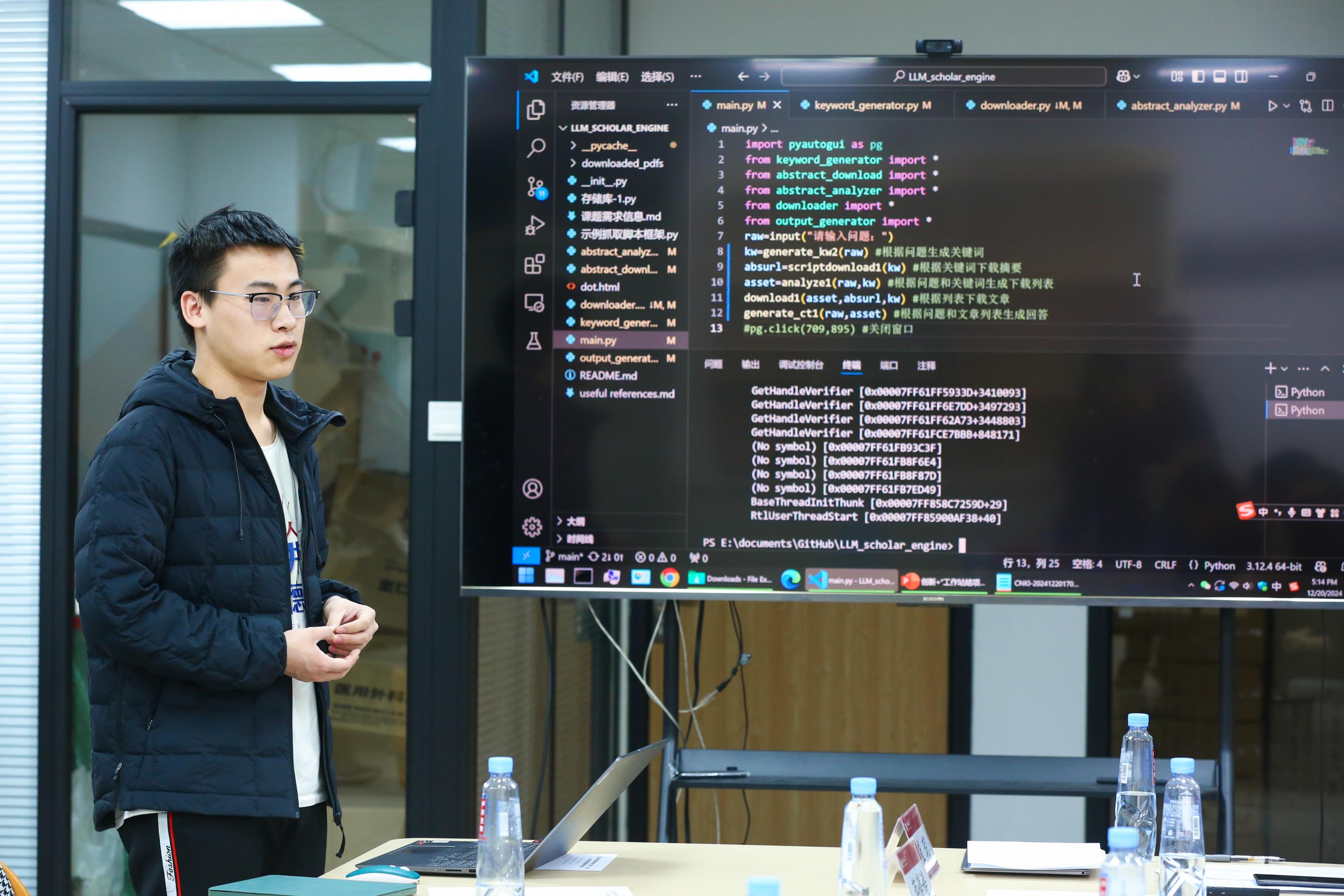 2023级本科生吴翼然对“一个基于 LLM 的学术问答引擎的设计与实现”课题进行了展示,该引擎致力于为学术研究提供精准高效的问答服务,助力科研工作者快速获取所需信息。在问答环节,评委们针对问答引擎的知识覆盖范围、回答准确性等关键问题进行深入交流,吴翼然同学一一作答。