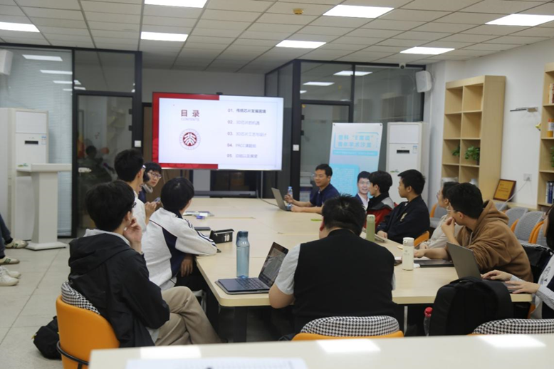 在互动环节,同学们积极提问。陈老师针对同学们的疑问进行了详细解答。他指出,不像传统二维芯片那样完全依赖先进光刻机等设备,三维芯片技术可以某种程度上绕过先进光刻机的需求,实现只有先进光刻机才能加工制造的传统二维芯片的性能。例如,在7nm工艺节点(DUV光刻即可实现,一种比EUV差的光刻机,国内可以加工出来)上,利用三维芯片技术,有望实现传统二维芯片5nm或者以下的工艺节点(只有EUV光刻机才能实现)的性能。他还介绍了基于3D封装的传统3D芯片技术和互联密度更高的基于单片3D的技术,并基于此点出了商用芯片和实验室芯片之间的差距。此外,陈老师还讲解了异构和异质的区别,以及互连线材料更换(如把铜换成钴等)的优劣,这些内容都与工艺和材料本身的特点密切相关。在科研方面,陈老师也分享了如何应对技术封锁以及未来的研究方向,他强调3D芯片技术是超越摩尔定律的必由之路。此外,陈老师还简要介绍了新的计算方式,如量子计算和光计算,虽然目前这些技术还处于实验室阶段,相关岗位较少,但也为同学们提供了更广阔的视野。