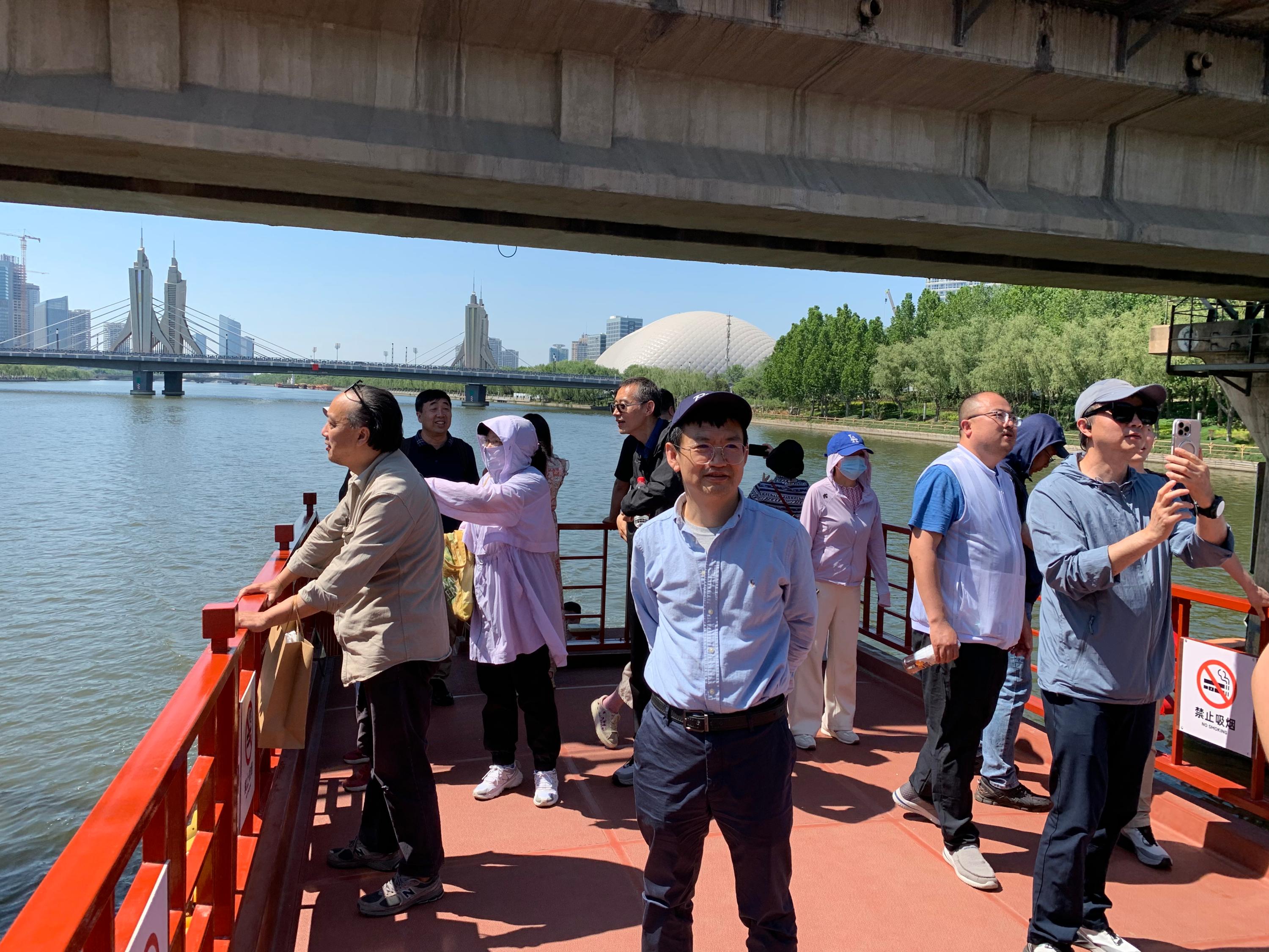 午后,团队乘船沿大运河缓缓而行,碧水蓝天间,运河商务区现代化楼宇与燃灯塔等古迹交相辉映。讲解员讲述大运河文化带生态修复、古建保护与数字经济融合发展的创新实践,教师们纷纷举起手机记录两岸风景,热议智慧城市、数字文旅等技术赋能传统文化的无限可能。有老师表示:“就像运河沟通南北,我们也要以科技创新连接历史文脉与未来图景。”