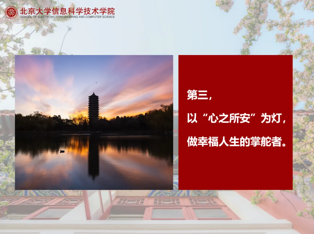 同学们,从今天起,你们将从“信科学生”转变为“北大信科校友”。但无论身份如何转换,理科一、二号楼的灯火永远为你们守候,“攻城狮”的微笑始终为你们绽放,大信科永远是你们的精神家园与坚强后盾!未来,当你在新燕园宿舍调试代码至深夜,当你在异国的实验室迎来曙光初现,当你在产业一线推动技术落地——请铭记,学院的目光始终追随,师长的祝福永远环绕,北大信科人的身份将赋予你不竭的力量!