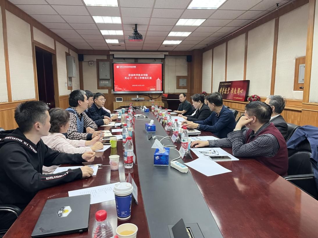 (简称“信科学院”),专题调研指导信科学院“五好”基层关工委建设工作。座谈会在理科二号楼2111举行,双方围绕深入贯彻落实立德树人根本任务,进一步发挥“五老”优势,赋能信科学院人才培养工作进行了深入交流。校关工委副主任郝光安、宋豫秦,委员刘寿安、刘宝栓、张蓓、安国江,信科学院党委书记、关工委主任严敏杰,副院长、关工委副主任邓斌,党委副书记、关工委副主任贾方健等学院关工委成员共同参会。