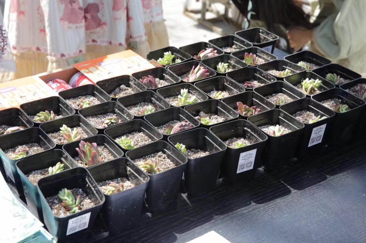 在场的不少学生不仅仔细地挑选自己喜欢的多肉绿植,还积极地与身边的伙伴交流盆栽种植、保护环境的经验体会,并呼吁更多的人投入到环保事业中来,现场气氛十分热烈。