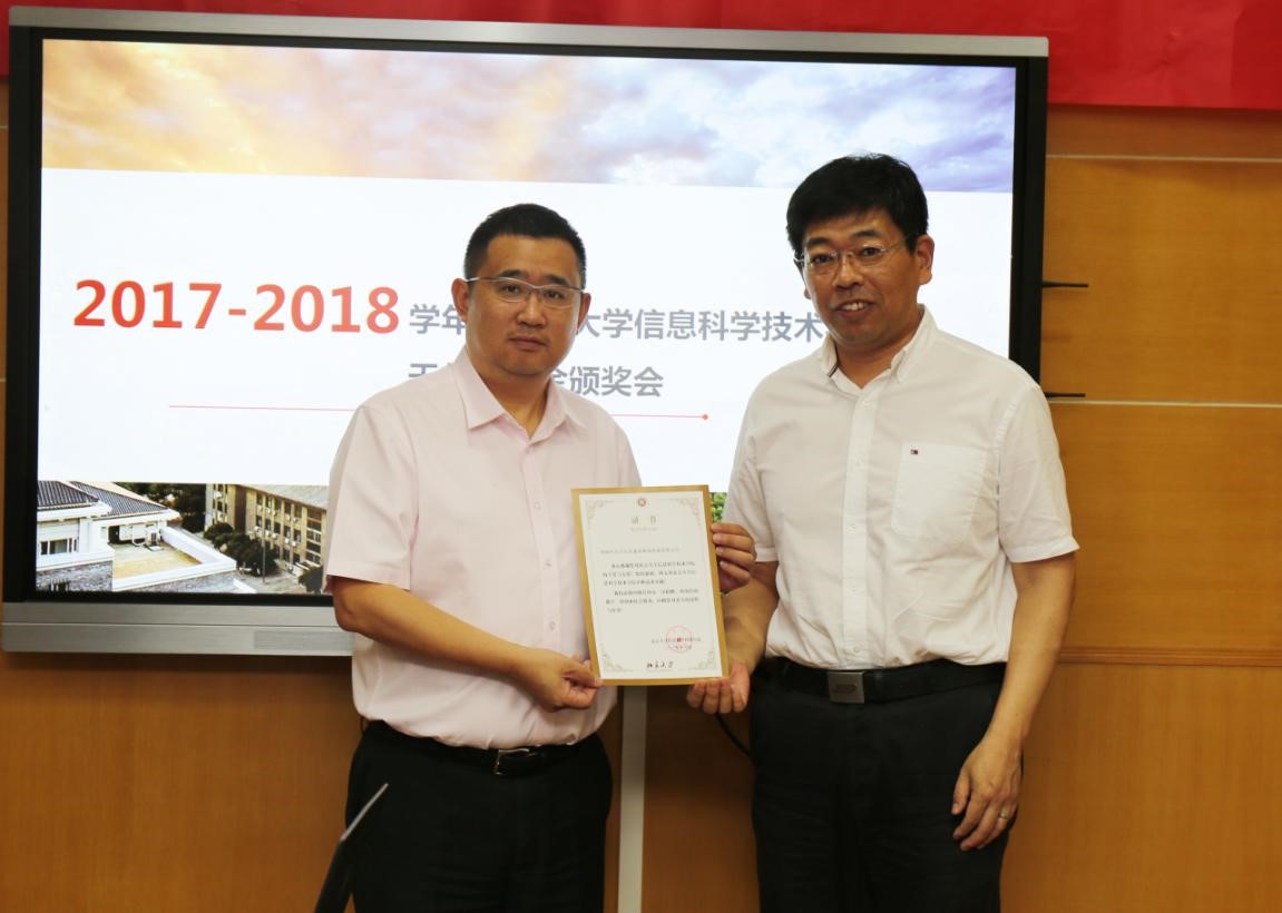 教育基金会副秘书长胡俊出席了颁奖会,八名荣获我院2017-2018学年度天创奖学金的同学也参加了会议。会议由AV研究所