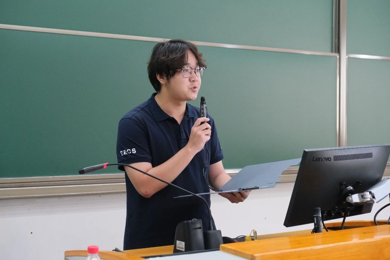 2022级宋海博同学作为在校生代表发言。首先,他向初入燕园、即将踏上军训征程的新同学们,致以了欢迎和祝福。他分享了自己参加军训的宝贵经历,军训使他学会了在困难面前不屈不挠,在挑战中勇于担当。最后,他号召2024级同学们借助军训的宝贵契机,积极向党组织靠拢。