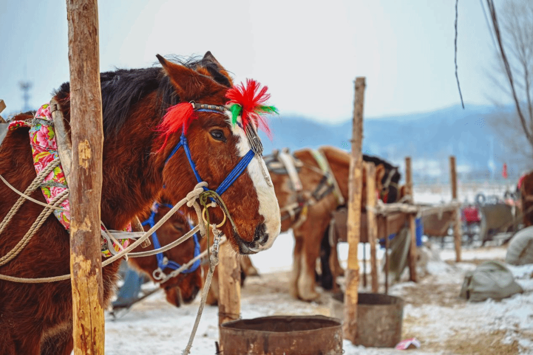 摄于黑吉两省交界处的山麓。农闲时节,村民会牵着自家的马去景区挣钱,休憩时,马儿偶尔沉思。