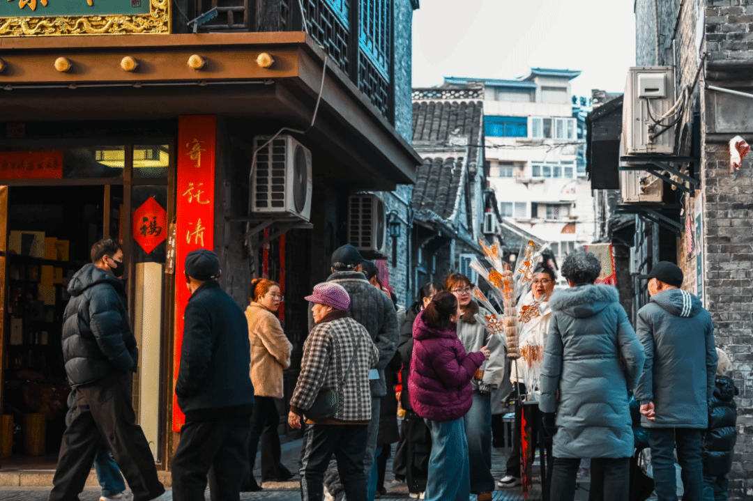 摄于江苏泰州。年初二的兴化城,老街巷育出新的商铺,而传统的糖画小摊也仍能吸引不少行人驻足。