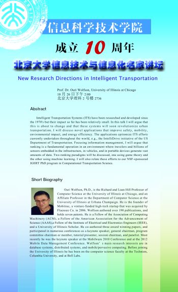 主讲人:Prof. Dr. Ouri Wolfson, University of Illinois at Chicago, USA